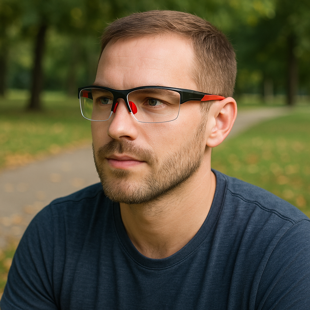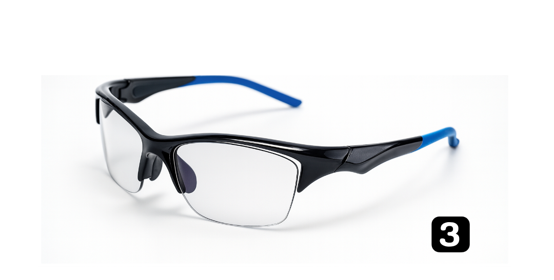 These lightweight sports goggles are designed for active use, combining comfort, durability, and secure fit. The wrap-around frame enhances stability during movement, while the semi-rimless design ensures a wide and unobstructed field of vision.